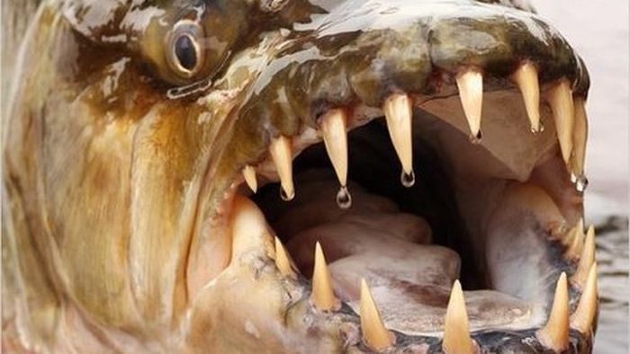 Большая тигровая рыба, или гигантский гидроцин представляет собой увеличенную и гораздо более жуткую версию печально знаменитой пираньи. Она обладает 32 острыми зубами, схожими по размеру с зубами белой акулы, и нередко нападает не только на людей, но и на крокодилов.