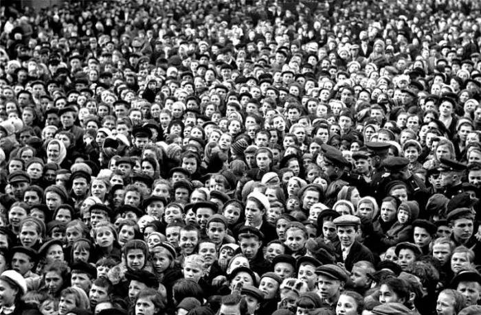 Народные гуляния на Красной площади после сообщения о капитуляции Германии.