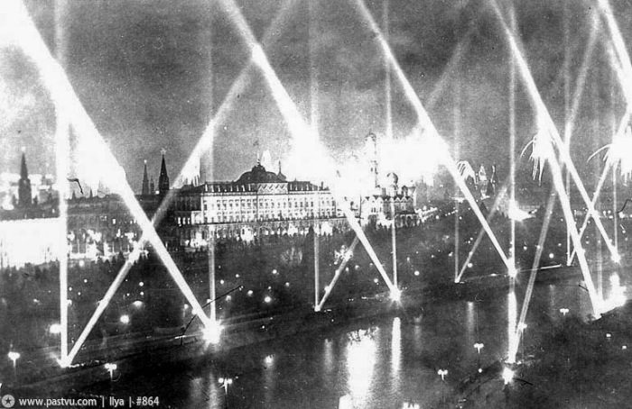 «В ночь на 9 мая 1945 года москвичи не спали. В 2 часа ночи по радио объявили, что будет передано важное сообщение. В 2 часа 10 минут диктор Юрий Левитан прочитал Акт о военной капитуляции фашистской Германии и Указ Президиума Верховного Совета СССР об объявлении 9 мая Днем всенародного торжества – Праздником Победы. Взяв фотоаппарат, я вышел на улицу…
