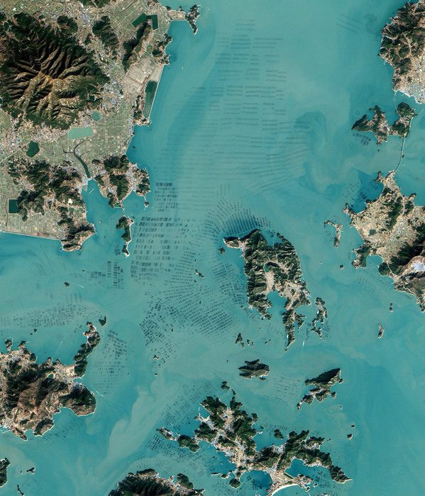 Фермы водорослей в Южной Корее.