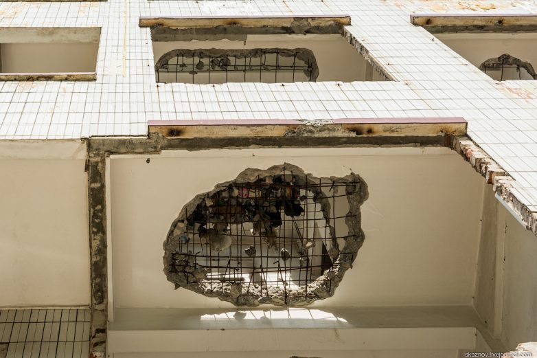 Большинство зданий искалечены строительной техникой и различными ухищрениями рабочих. Борьба с жителями идет круглосуточно… На некоторых домах вешают таблички что вних живут дети или старики, или что просто есть люди… чтобы эскаватор не убил никого при сносе.