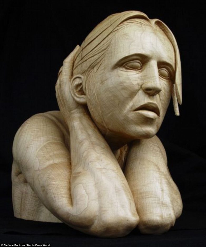 Скульптор из Нью-Йорка Стефани Рокнак поражает своими невероятными работами, которые выглядят очень реалистично за счёт сложных деталей. Для создания своих скульптур мастер использует цельные куски дерева. Благодаря таланту и усердному труду древесина превращается в пловцов, бороздящих воду или задумчивых женщин.