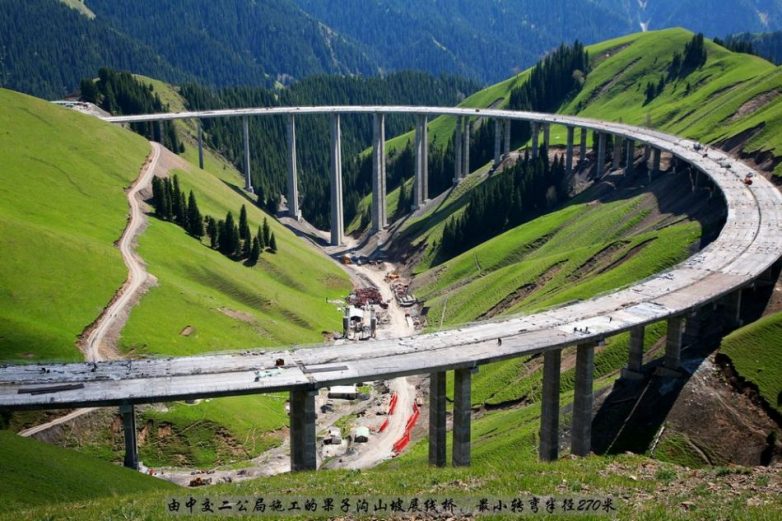 Крупнейший железнодорожный виадук в мире — Caijiagou Railway bridge. Массивные опоры выполнены в форме китайского иероглифа — «люди»: