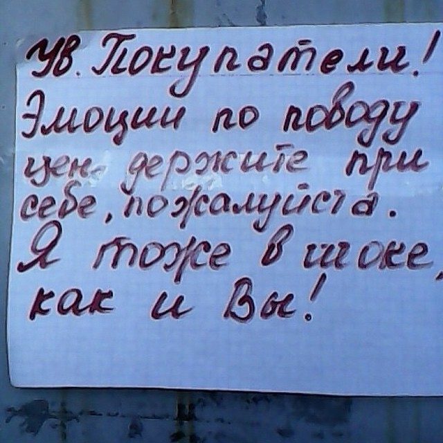 Крик души продавщиц и работников ЖКХ, которые устали отвечать на глупые вопросы, тоже обязательно вызовет улыбку в этот хмурый весенний день. Итак, 5 минут безудержного хохота над объявлениями и вывесками, сфотографированными пользователями сети.