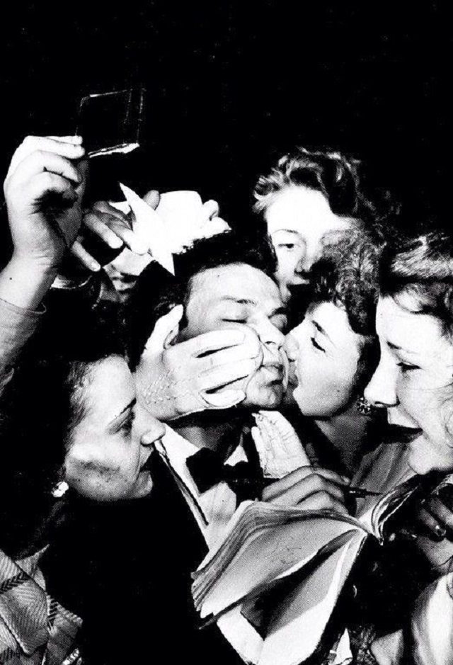 Фрэнк Синатра в окружении безумных фанаток, 1940-е.
