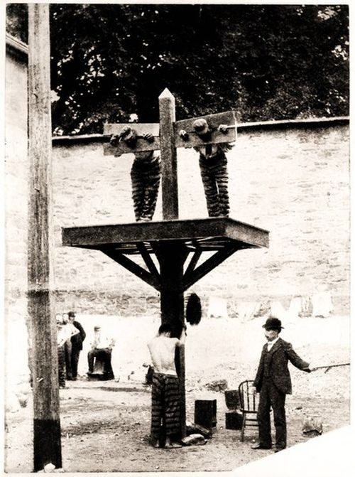 Заключенные у позорного столба во дворе суда графства Ньюкасл, Делавэр, 1900 г