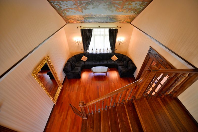 Кстати, дворец продается под отделку, так что 265 миллионов рублей — это только стоимость участка (123 сотки с возможностью увеличения) и собственно здания. Золотые унитазы придется приобретать отдельно.
