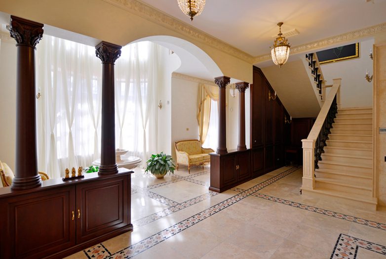 Помимо стандартных спален, гардеробных и санузлов, будущие жители получат «в нагрузку» каминный и бильярдный залы, террасы, бассейн, сауну, тренажерный зал, оранжерею и домашний кинозал.