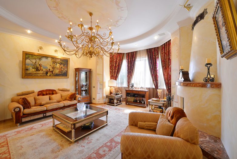Это скромное жилище находится в 20 километрах от МКАД по Калужскому шоссе, в поселке «Озерный», и стоит 265 миллионов рублей. Дом является точной копией Елагина дворца в Санкт-Петербурге. Общая площадь «шедевра» — 3233 квадратных метра.