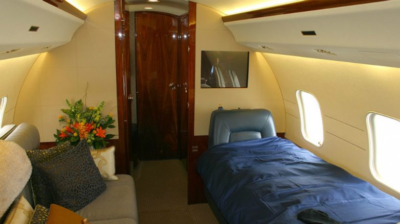 Это вообще один из любимых самолётов голливудской элиты. BD-700 Global Express стоит в ангаре и у Селин Дион. Это идеальный самолёт для быстрой бизнес-поездки. Внутри есть место для 18 пассажиров, рабочего кабинета, и общего зала для совещаний и встреч.