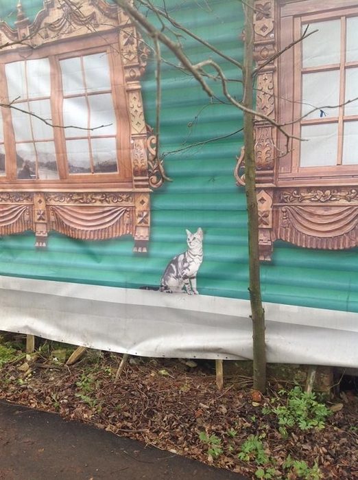 В начале ноября в Суздале стали оборачивать развалившиеся, почти сгнившие дома, в баннеры. На этих баннерах были изображены не только фасады домов, но и растительность, цветочные горшки и даже кошки. Оказалось, город таким изысканным способом готовился к визиту Путина, который должен был приехать на Всероссийский съезд муниципальных образований. Но ВВП так и не посчастливилось оценить старания местных властей. А жаль.