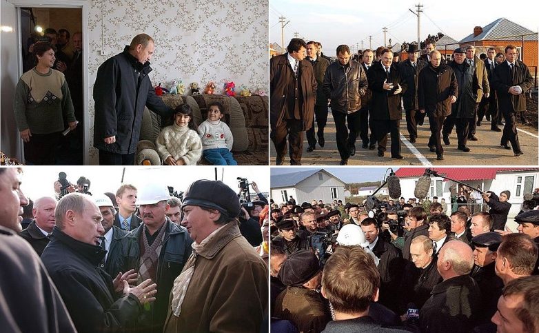 Посмотреть на новостройки приехал президент России Владимир Путин, который пообщался со счастливыми владельцами домов. Этот сюжет показали по всем каналам, вся страна радовалась, что пострадавшие от наводнения так быстро получили дома. Дома-то действительно были, но «потёмкинскими» оказались сами пострадавшие. Некоторые СМИ сообщали, что на встречу с главой государства в станицу завезли подставных селян.