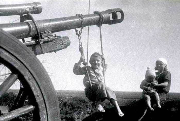 Качели на стволе! А дуло — это дырка откуда вылетают снаряды!