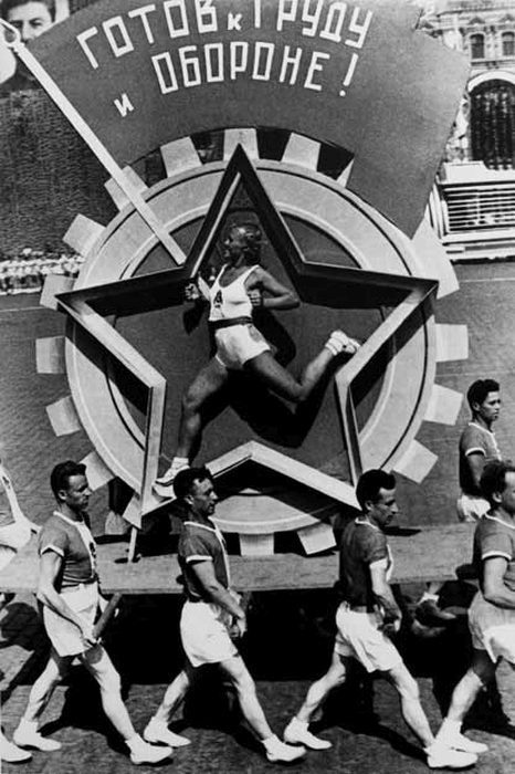 Живая эмблема ГТО, 1936 год Бедная девушка, сколько же она так простояла!