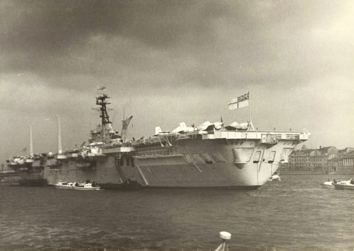 Британский авианосец около моста Лейтенанта Шмидта. Ленинград 1956