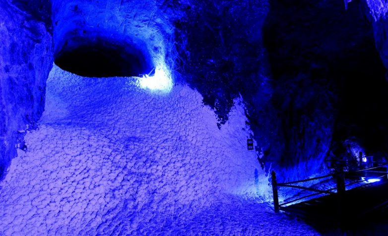 Соляной водопад в соляной шахте Немокон. Эта шахта является одной из самых популярных туристических достопримечательностей в Колумбии.