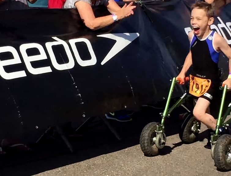 Толпа ревела! 8-летний мальчик с церебральным параличом сам пересек финишную черту триатлона
