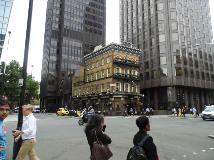 Старый паб в современном Лондоне.