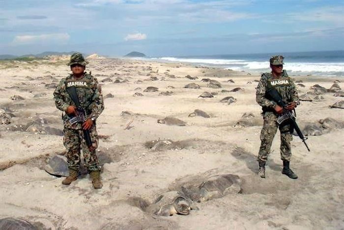 Это – мексиканские военные. Они охраняют черепах, которые откладывают яйца, от браконьеров.