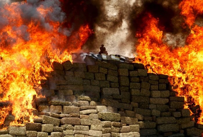 Сожжение 7 тонн марихуаны и других наркотиков в Тихуане. По приказу Генеральной прокуратуры, около 140 тонн наркотических веществ было уничтожено одновременно в девяти штатах по всей стране.