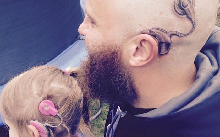 Житель Новой Зеландии сделал татуировку в виде слухового аппарата, чтобы его 6-летняя дочь не стеснялась носить свой слуховой аппарат.