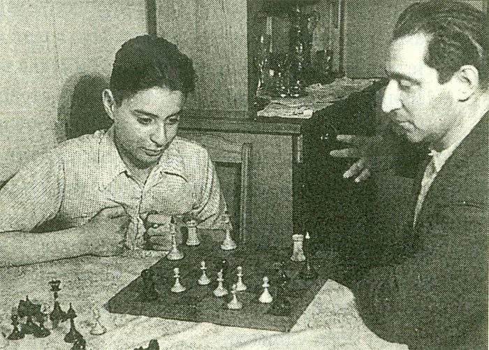 Отец и сын Смеховы играют в шахматы, 1953 год