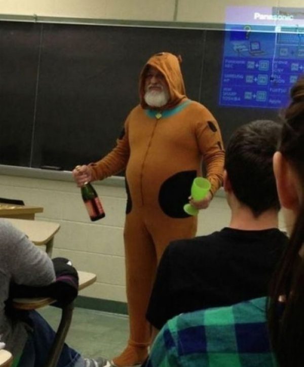«Мой преподаватель сказал, что если весь класс получит пятерки за тест, он придет в костюме Скуби-Ду и принесет детское шампанское. Мы постарались, а он сдержал слово».