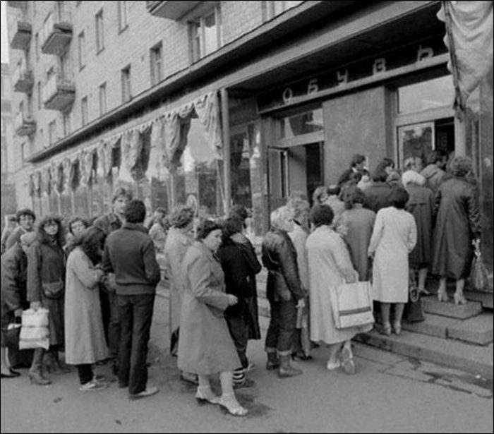 Всегда в СССР состоялись очереди очереди очереди, а время потерять. Вспоминаем горбачевскую перестройку, начался общий дефицит товаров, одеждах и обуви.