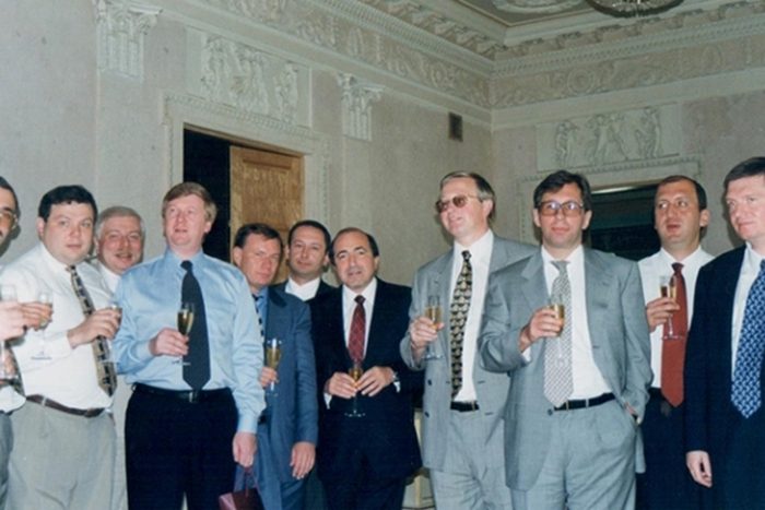 Ко времени, когда была сделана фотография, Ходорковский уже стал генеральным директором межбанковского объединения «Менатеп». В руководство банка вошли в том числе сам бизнесмен, который в будущем станет одним из богатейших людей в мире, а затем сядет в тюрьму почти на 11 лет, Леонид Невзлин – сейчас основной правопреемник состояния Ходорковского, заочно приговоренный Генпрокуратурой РФ к пожизненному заключению, Платон Лебедев – бывший председатель совета директоров Menatep Group, отсидевший 10,5 лет в колонии общего режима, и нынешний помощник президента Владислав Сурков.