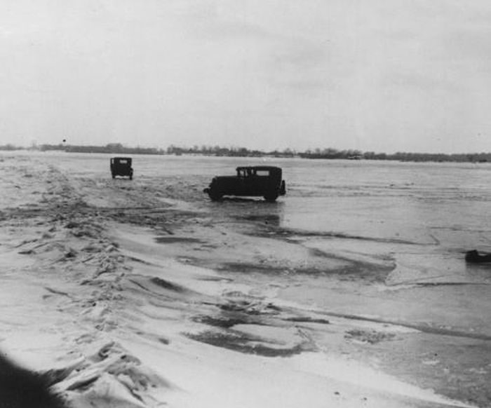 В отдельных регионах Канады, также как и в Соединенных Штатах, действовал сухой закон, однако он не запрещал производство спиртных напитков для продажи в другие страны. Этой лазейкой успешно пользовались канадские предприниматели совместно с американскими бутлегерами. «Ромовозы», многочисленные суда с тысячами ящиков, наполненных спиртными напитками, ежедневно пересекали границу через реку Детройт прямо под носом у береговой охраны — у ведомства не было достаточно плавсредств чтобы помешать контрабандистам, да и продажность его сотрудников играла весомую роль. Зимой, когда река замерзала, алкоголь переправлялся автотранспортом. На февральском фото 1930 года можно увидеть, что водительские двери открыты на случай, если автомобиль провалится под лед