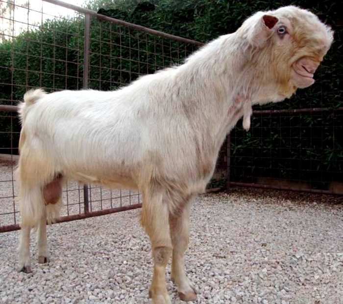 На первый взгляд кажется, что эта коза серьезно пострадала в какой-нибудь аварии. Но на самом деле, это специально выведенная порода, которую также называют шами. Местные жители считают таких коз невероятно красивыми. Самым «красивым» козам их внешность даже доставляет неудобства при еде, и в дикой природе такие животные вряд ли бы выжили с такой перекрученной челюстью.
