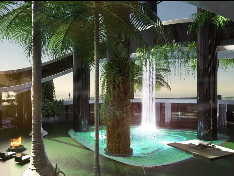 Здесь есть пальмы, вертикальные сады и водопады.