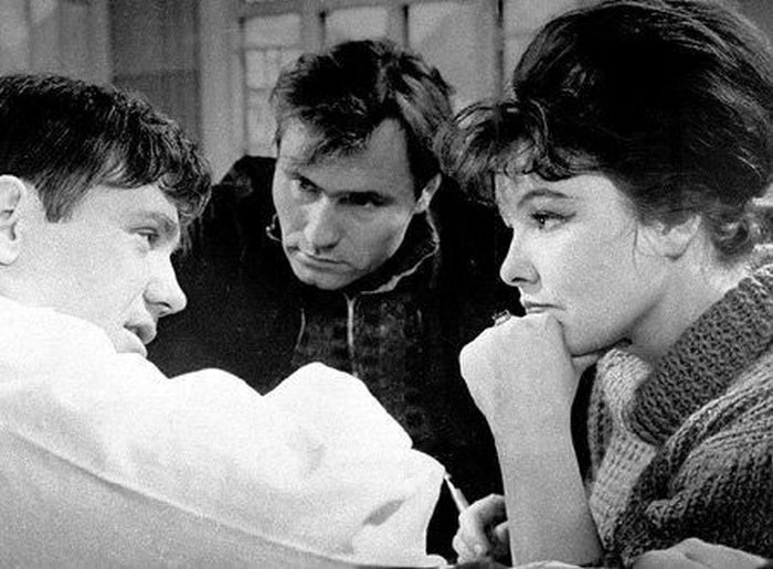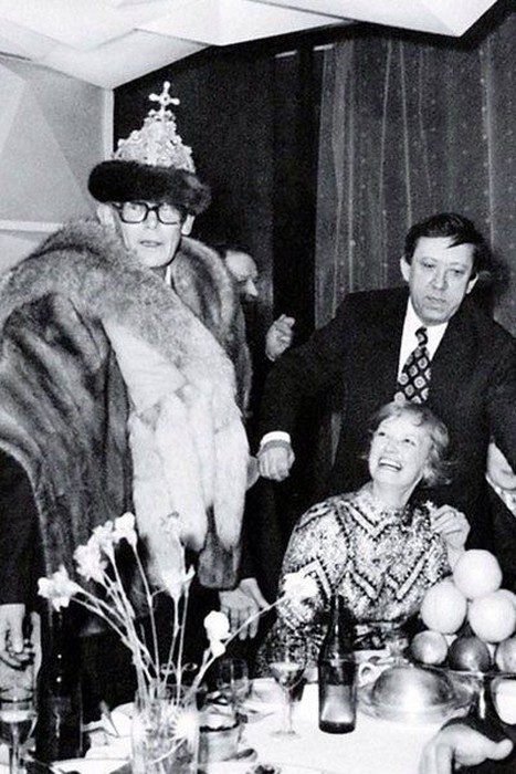Леонид Гайдай, Нина Гребешкова и Юрий Никулин на банкете по случаю окончания съёмок фильма «Бриллиантовая рука», 1969 г.