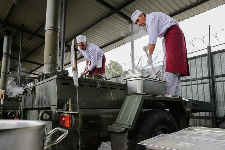 Военные используют комплект формы для стран с жарким климатом. Два головных убора — панама и фуражка, футболка, легкая куртка, шорты, облегченные берцы, под берцы — длинные носки.