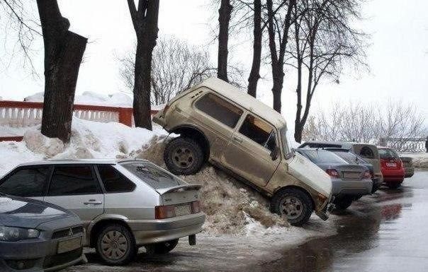 Припарковаться зимой — большое искусство
