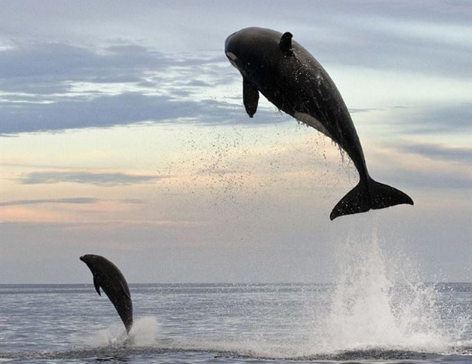 В погоне за дельфином эта косатка выпрыгнула на 5 м из воды...