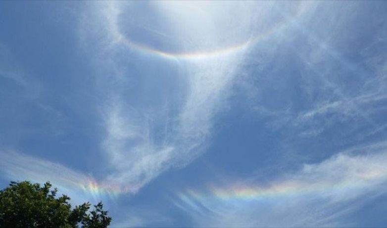 Если Солнце находится на малой высоте над горизонтом, а в атмосфере присутствуют микроскопические кристаллы льда, наблюдатели могут заметить несколько светлых радужных пятнышек справа и слева от Солнца. Эти причудливые гало преданно следуют за нашим светилом по небосводу, в какую бы сторону оно не направлялось.