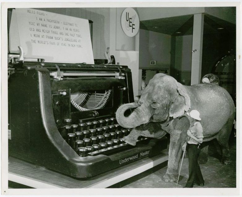 Презентация самой большой печатной машинки в мире на Всемирной выставке в Нью-Йорке, 1940 год.