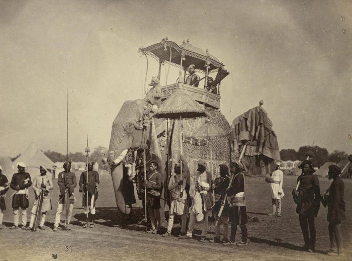 Махараджа Орчха Пратап Сингх на слоне. Британская империя, Индия. 1875 год.