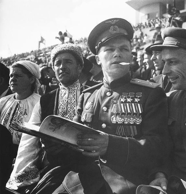 Трижды Герой Советского Союза Иван Кожедуб на стадионе «Динамо». 1964 год, Москва