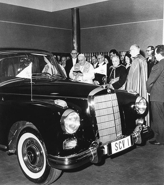 Папа Иоанн XXIII благословляет свою машину Mercedes-Benz 300. 1960 год.
