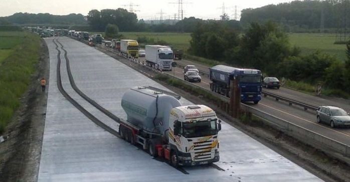 Больше всех поразил водила заехавший на бетонную незастывшую дорогу.