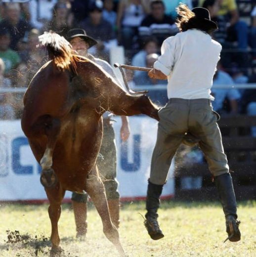 Интересно, цистерна с газом на перевернувшимся тягоче бахнула? И очень понравилось фото, где конь залимонил по бубенцам бравому кавбою так, что он обделался-:)))