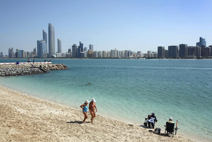 Абу Даби (ОАЭ). Температура воздуха в январе + 24-27 градусов Цельсия, воды — 25-27.