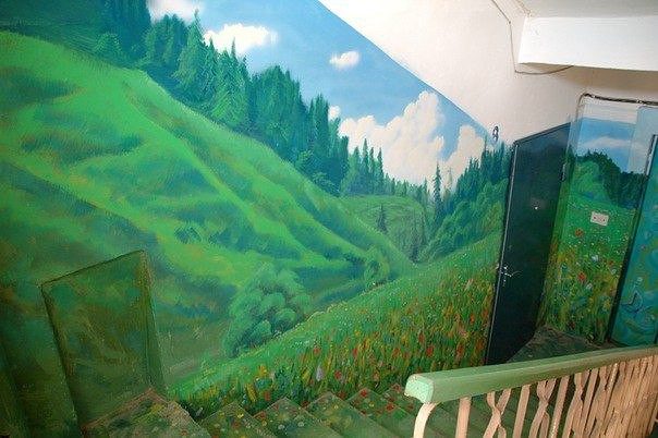 Вместо обычного холста художник из Астрахани Борис Черниченко выбрал стены родного подъезда. Художник расписывал подъезд по ночам. Ничем не примечательные ранее стены дома по улице Московской теперь радуют жителей чарующими пейзажами: на первом этаже раскинулась чарующая берёзовая роща, на втором простирается синяя речная гладь.