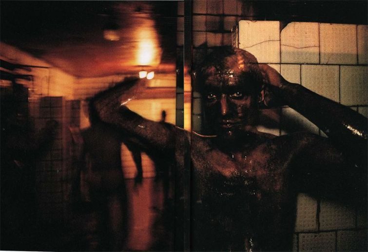 Донецкий шахтёр смывает грязь после смены, проведенной в шахте. Март 1993 года.