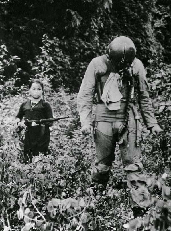Лейтенант ВВС США в плену у юной вьетнамской девочки. Вьетнамская война, 1967 год.