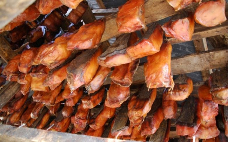 Исландское национальное блюдо, представляющее собой ни что иное, как гнилое мясо гренландской полярной акулы. Правда, круто звучит? Да, мы тоже не уверены. В свежем виде употреблять мясо этой акулы вообще нельзя: у нее нет почек, поэтому вся туша содержит высокое содержание мочевины. Вот находчивые викинги и придумали рубить тушу на куски и закапывать в землю, недель на восемь. Мочевина, за это время уходит в землю, ну а что с мясом происходит — тебе лучше не знать. Если срок выбран неверно, и мясо не дошло (или наоборот, переспело в земле), то как минимум реанимация едоку обеспечена.