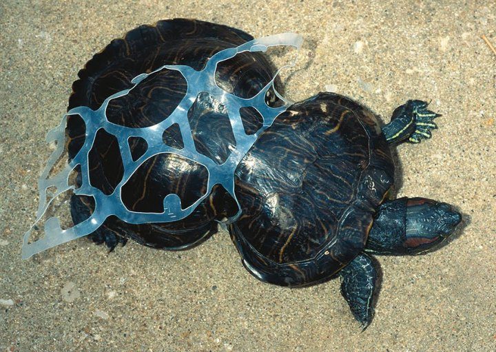 2. И эта черепаха, запутавшаяся в пластиковых отходах…