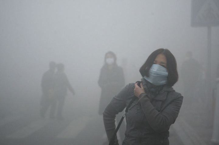 20. Девушка идёт по Пекину. Содержание вредных частиц в воздухе города в 40 раз превышает международные стандарты безопасности